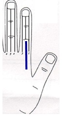 Yang side of index finger draw thick Dark Blue colored band from Neutro joint to base joint of finger.